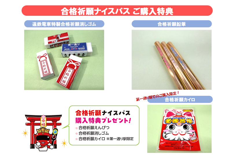 ご購入いただいた方全員に「合格祈願鉛筆」、「遠鉄電車特製合格消しゴム」をプレゼント!